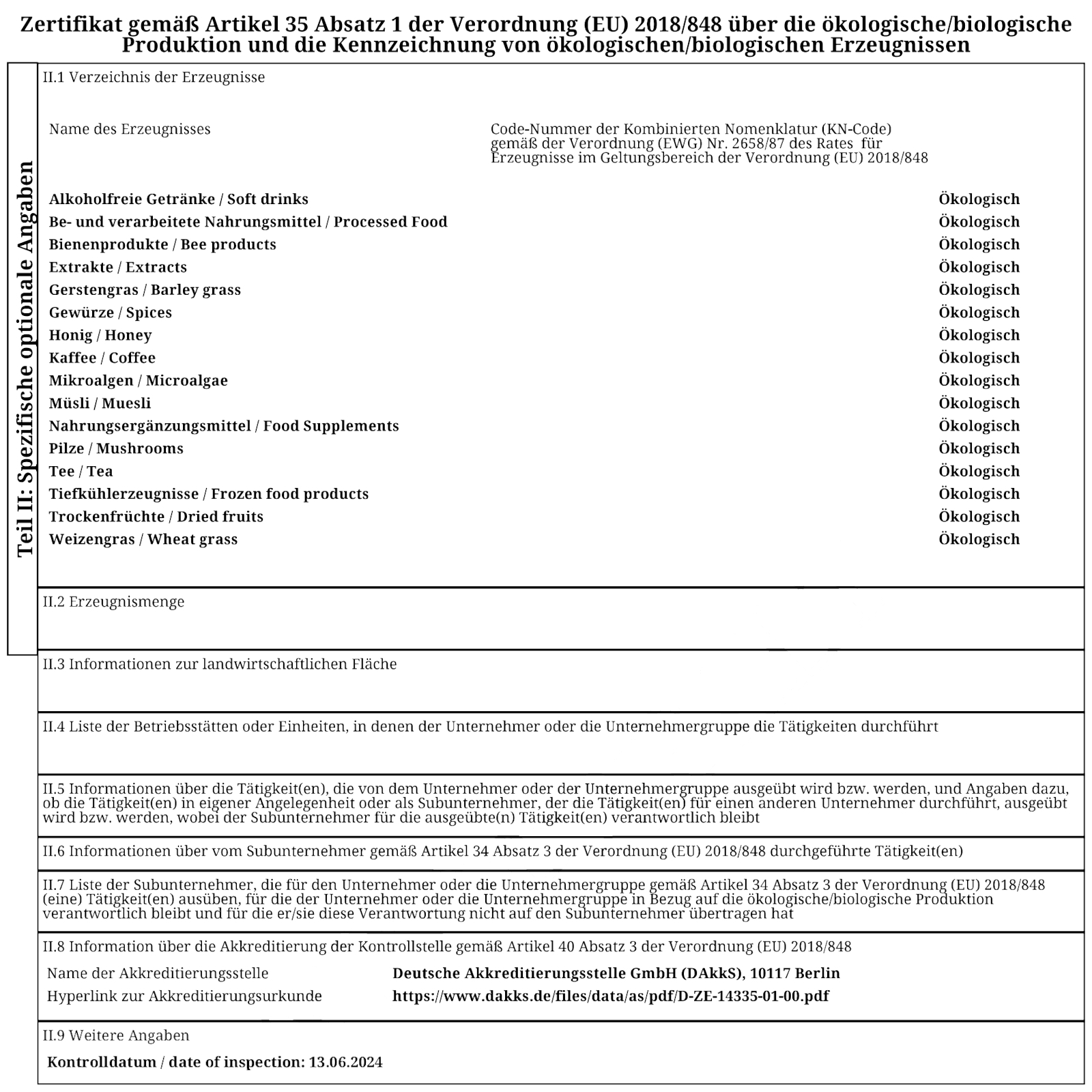 Die Ökokontrollstelle DE-ÖKO-006 garantiert und zertifiziert die außergewöhnliche Reinheit unserer Bio Spirulina platensis Alge. Auf Wunsch erhalten Sie gerne eine Analyse unserer Produkte. Die Produktion erfolgt nach Iso 9001:2000 Norm.